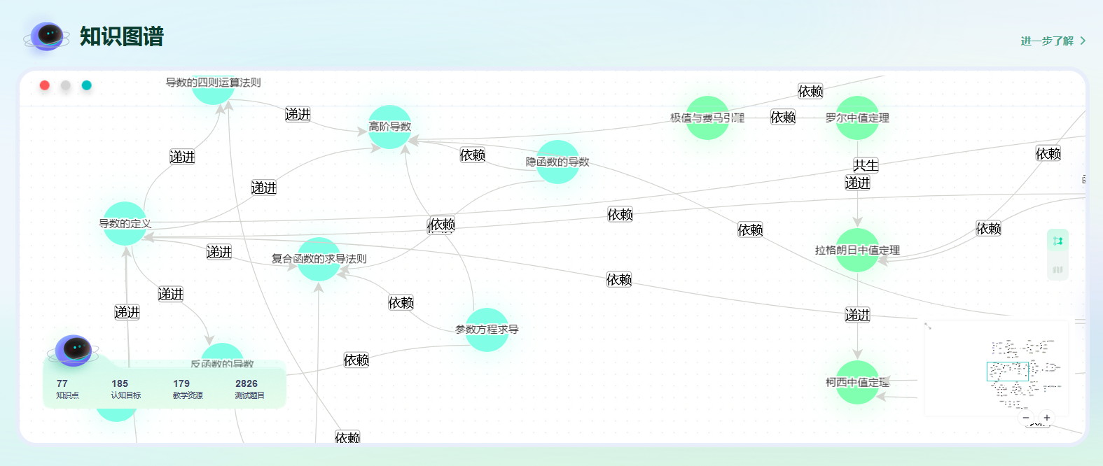 教育数字化是教育发展的未来愿景,而知识图谱是教育数字化转型的基础工作。在此背景下,工科数学分析信息大类课程团队在学院支持下,以“新形态AI课程”为抓手,切实推进数学教育教学改革建设,积极探索由传统课堂教学向数字化、智能化和个性化的新形态教学转型,建设了第一门基于知识图谱的新形态AI课程。