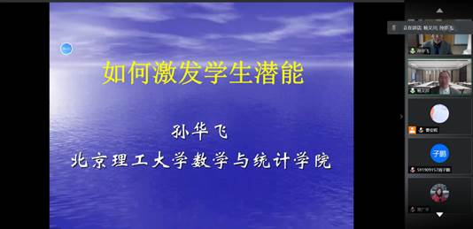 12月30日,“北航数学教学研究中心名师讲座” 首次线上报告活动顺利举行。北京理工大学孙华飞教授为学院师生作了《如何激发学生潜能》专题讲座,该报告吸引了来自北京地区包括北大等高校、以及江西、云南等地多所高校的师生在线学习交流。讲座由北航澳门十大信誉好的网站本科教学副院长杨义川教授主持。