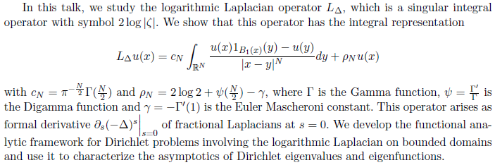 【学术报告及分析与偏微分方程讨论班(2022春第11讲)】The Dirichlet Problem for the Logarithmic Laplacian