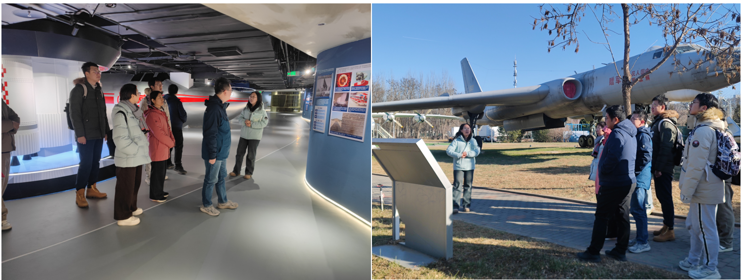 科学中心支部和Y25091支部先后参观了沙河校区主楼建筑群、新图书馆及航空航天博物馆沙河馆。在讲解员的引领下,系统了解了北航建校历史与贡献,观摩了“北京一号”、轰六等标志性展品。