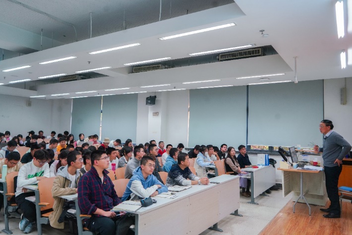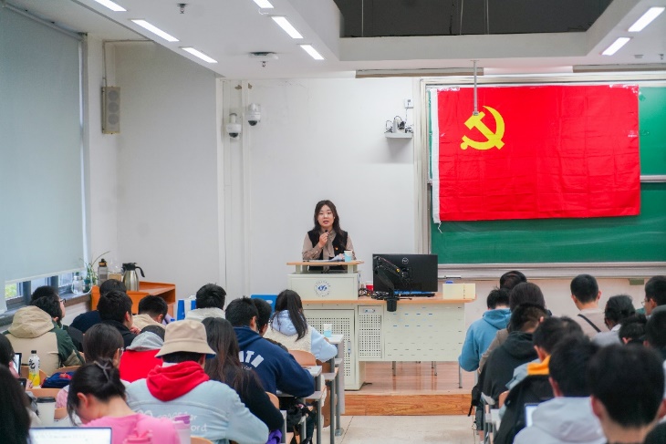 118日下午,澳门十大信誉好的网站2023年秋季学期院党校第一次党课暨开班仪式于沙河校区J5-102举行。本次党课由中国航空技术国际控股有限公司原高级副总裁黄斌主讲。学院党委副书记魏茜、专职辅导员程乾出席,近150名学生党员和入党积极分子聆听学习。