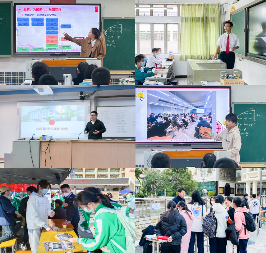 为进一步增进广东学子对北航的了解,寒假期间,北航广东招生组携手广东籍2022级新生返回高中母校分享在北航的学习生活。广东招生组结合各中学实际,沟通定制宣传素材,并提供了“小秘书”、北航明信片等作为宣传物料支持。