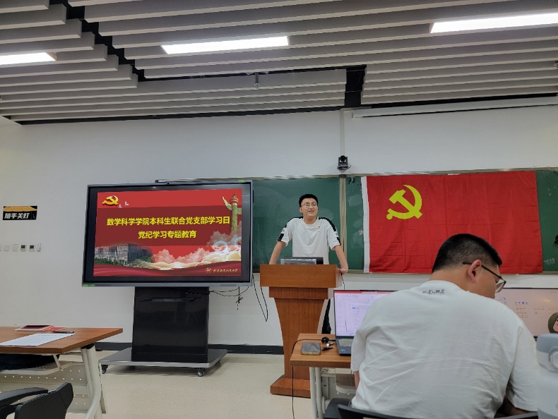 支部书记李非根据《关于在全党开展党纪学习教育的通知》,结合学校和学院关于党纪学习教育的整体部署,传达了开展党纪学习教育的有关精神。