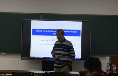 11月5日下午,中国科学院数学与系统科学研究院研究员董昭受邀访问我院,为师生带来了一场题为“Stability of rarefaction wave for stochastic Burgers equation”的学术报告。报告介绍了随机伯格斯方程强解的大时间性质,证明随机伯格斯方程的稀疏波在白噪声扰动下是非线性稳定的。