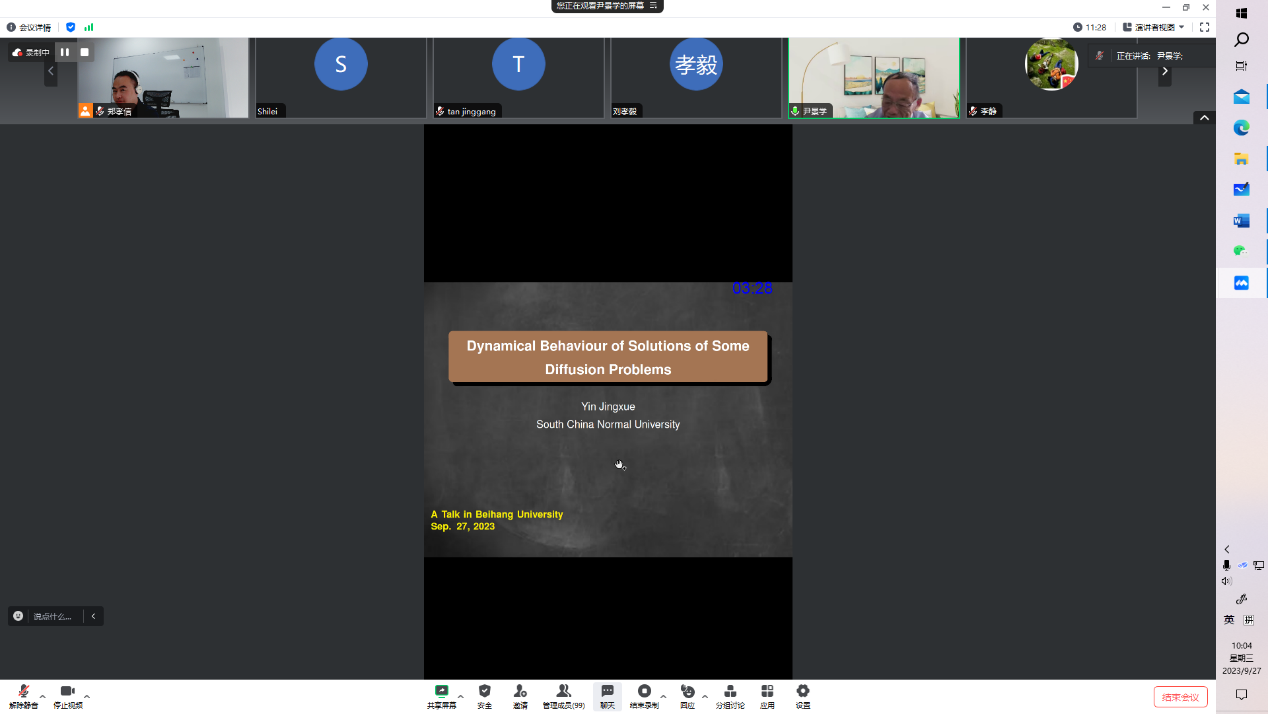 2023年9月27日上午,华南师范大学尹景学教授应邀为澳门十大信誉好的网站师生做了题为 “Dynamical Behaviour of Solutions of Some Diffusion Problems”的学术报告。 此次报告由应用数学系郑孝信老师主持,相关研究领域的师生参加了本场报告。