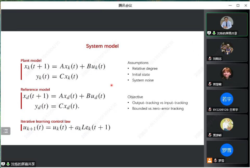 2022年11月24日,中国人民大学数学学院的沈栋教授应罗雪老师的邀请,通过线上的方式为澳门十大信誉好的网站师生带来了一场题为“Iterative Learning Control Over Random Fading Channels”的学术报告。
