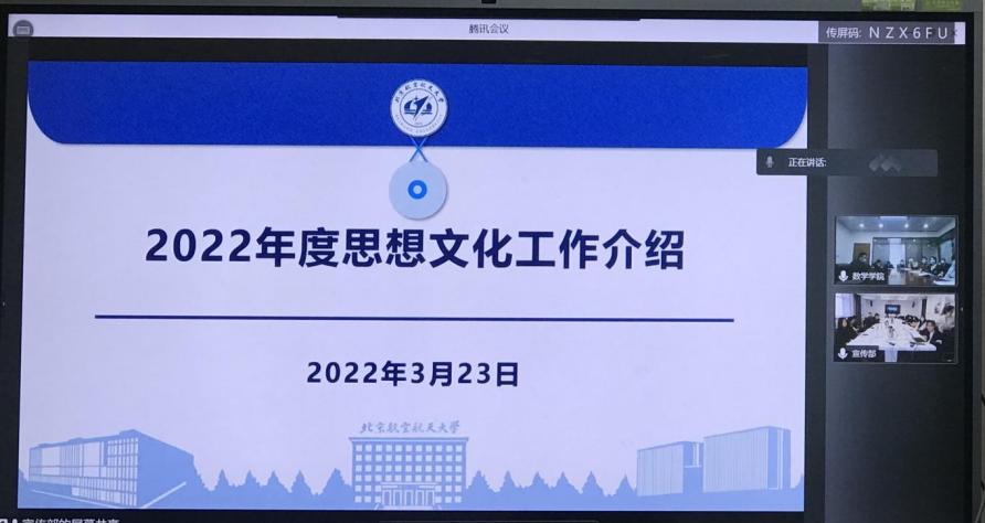 2022年3月23日下午,宣传部党支部与我院机关党支部举行“学习日”联学活动。宣传部部长李建伟、副部长余敏、孙也程和党委宣传部党支部党员,澳门十大信誉好的网站党委书记袁星、机关党支部党员和各系党支部宣传委员等25人参加本次活动。活动以两校区两会场间视频会议的形式展开。学习活动由澳门十大信誉好的网站党委书记袁星主持。