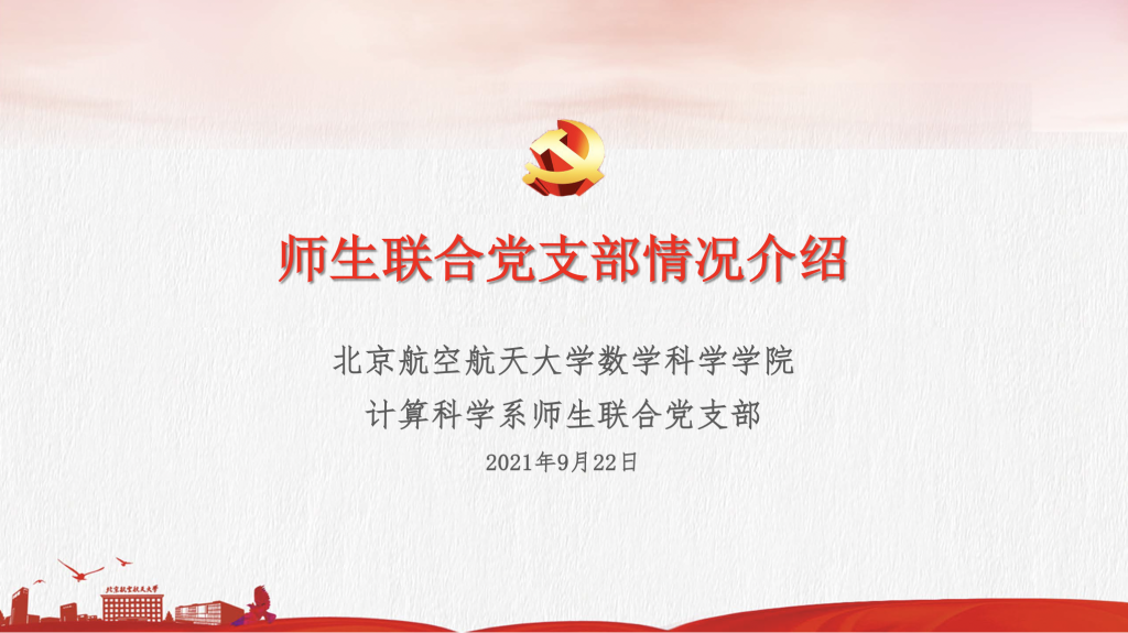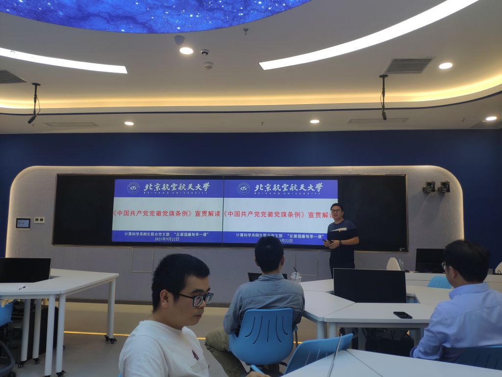 2021年9月22日下午,北航澳门十大信誉好的网站计算科学系师生联合党支部在主楼E405开展迎新活动,迎接支部新成员。11名来自计算科学系的2020级和2021级的研究生党员充实到支部中,为党支部注入了新鲜的力量。师生联合支部是全国党建工作样板支部建设单位,是澳门十大信誉好的网站党建工作的一项创新,迎新活动也是师生联合支部区别于单一教工和学生支部的重要活动。