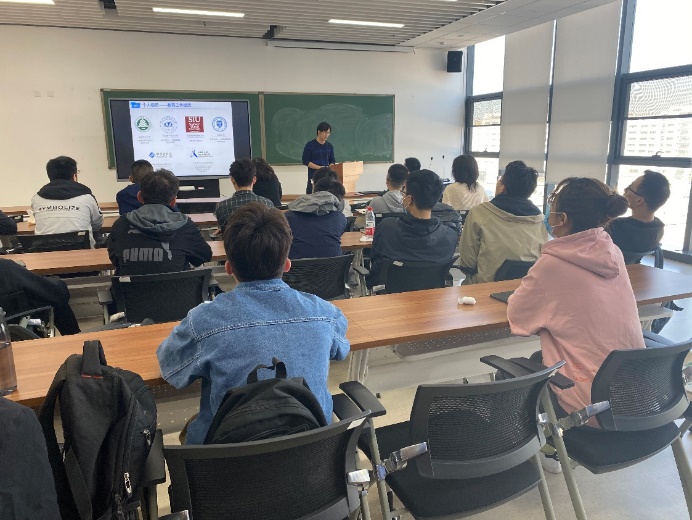 然后陈博士针对保研、考研、出国及工作等不同选择,向同学们提出了个人的意见和建议。在场的老师和同学积极提问参与讨论,收获颇丰。