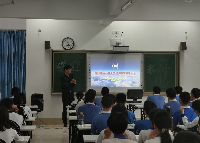 20日下午,招办和广东招生组一行前往深圳红岭中学,与红岭中学校长张健以及高中部部长等校领导进行交流座谈,双方就生源培养等问题进行了深入交流,随后,张青竹面向红岭中学高三学生宣讲我校历史传承、学科建设、学生培养等情况,从学校的“行业优势”、“学科专业”、“师资队伍”、“科研实力”、“人才培养”、“学风校风”、“升学就业”、“国际交流”、“校园环境”等九个方面全方位介绍了今日北航,引发广大学生共鸣和向往。