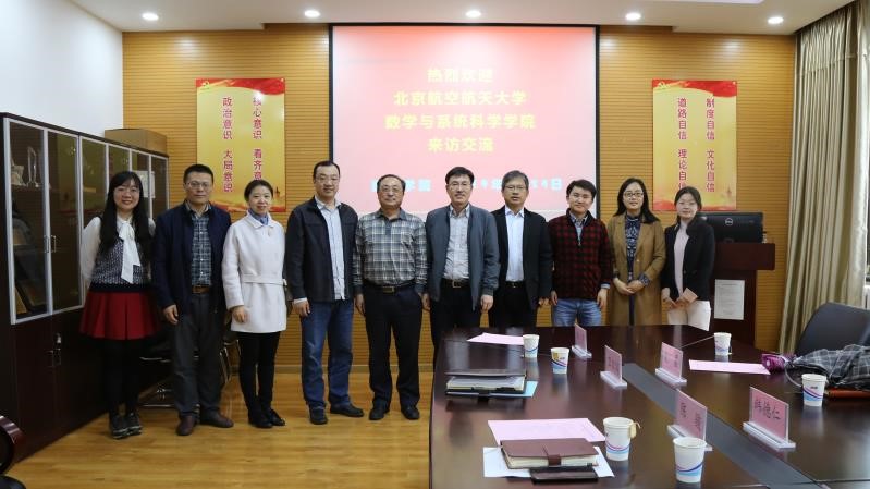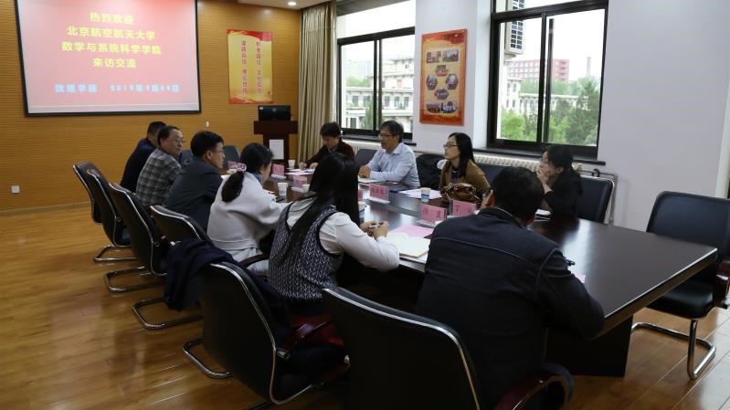 4月24日下午,我院院长韩德仁,系主任夏勇、杨卓琴,院党政办主任丁琴一行前往北京科技大数理学院调研学习。北科大数理学院院长陈骏、副院长兼党委副书记刘雨芙、院长助理卫宏儒,应用数学系主任刘宇、院办主任陈星等老师参加了座谈会。