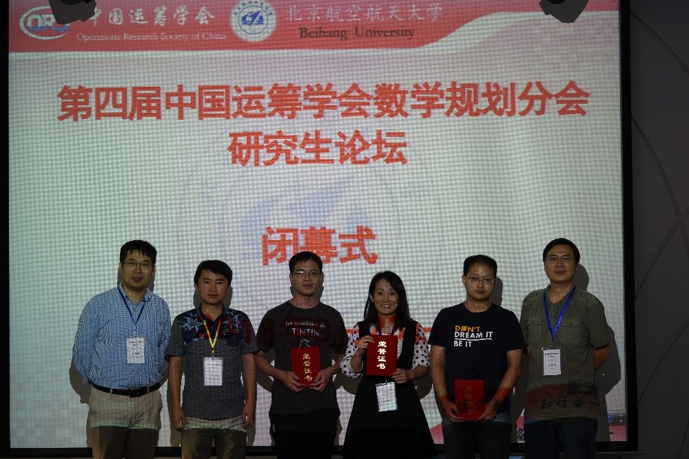9月23日下午学术报告结束后,举行了简短的闭幕式,由澳门十大信誉好的网站数学与系统科学学院夏勇教授主持。本次论坛从23位研究生报告中评选出三位优秀成果奖,香港中文大学的刘慧康、浙江大学的甘进翔、中国科学院数学与系统科学研究院的陈雅丹获此殊荣。由文再文研究员、夏勇教授、刘亚锋研究员分别颁发优秀成果奖证书,每位获奖者另有奖金1000元以资鼓励,由杉树科技公司特别赞助。最后在与会代表的热烈掌声中,本次研究生论坛圆满结束。