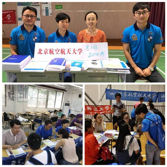 在广州,为期5天的招生宣传工作得到了近30位校友的鼎力帮助。炎热的夏季,广东校友会的校友们不仅专门接送招生老师们去各个招生地点,还积极主动地响应广东招生工作组的号召,不辞辛劳地去到华南理工大学、广州市高招咨询会、广东实验中学、广雅中学等近十处招生宣传点,为今年的考生宣传北航的文化和情怀,现身说法介绍北航目前的发展和就业工作情况,点燃高考生心中的航空航天报国梦想。广东校友会们见证了北航招生会场人气聚集,场面火爆。