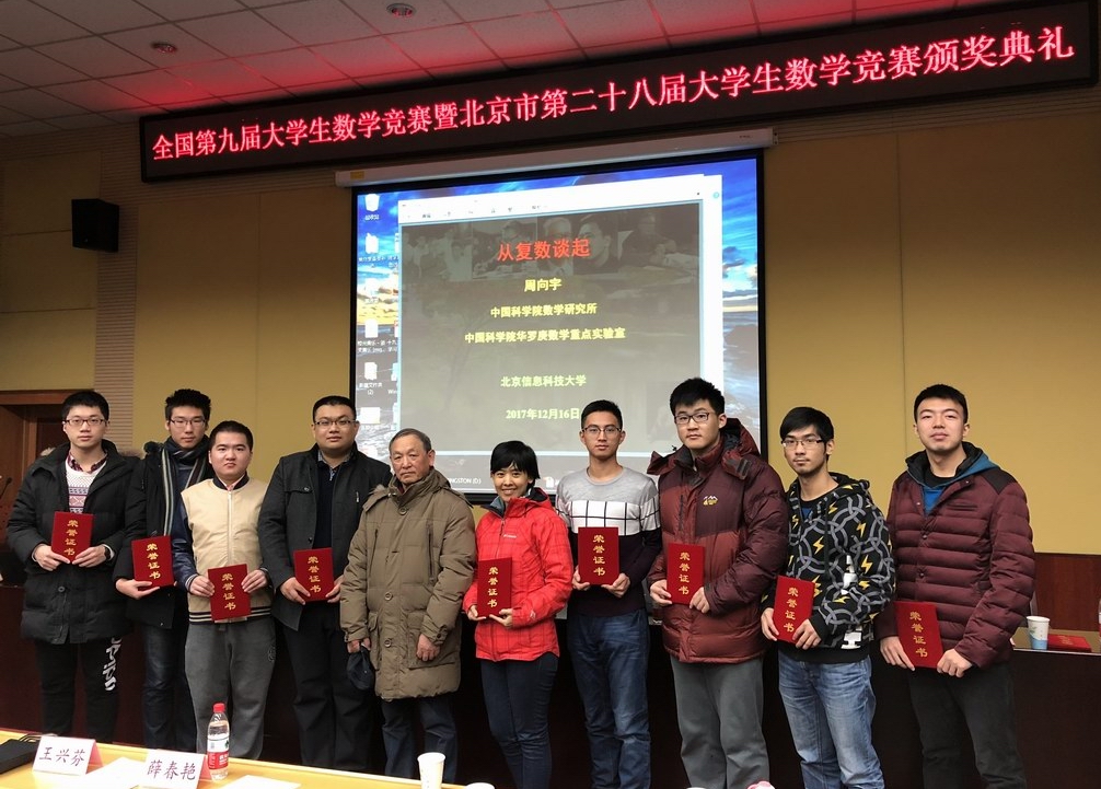 12月16日上午,全国第九届大学生数学竞赛暨北京市第二十八届大学生数学竞赛颁奖典礼在北京信息科技大学举行。
