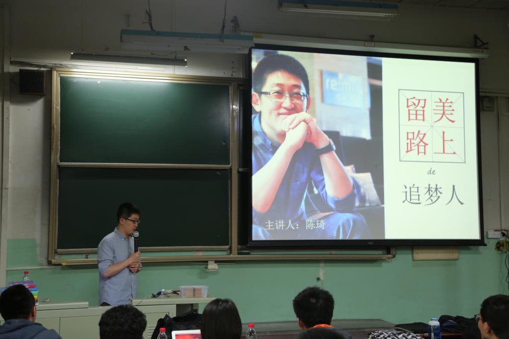 4月24日下午六点半,数学学院邀请到北航2000级校友、微臣教育的创始人陈琦老师为全校同学带来一场关于出国规划英语学习的精彩讲座。讲座还没开始,教室里已经座无虚席。据了解,来参加讲座的很多都是正在或者将要备战GRE的同学,有人声称“想要目睹琦叔的真容,跟琦叔要一个签名”。在琦叔走上讲台的瞬间,同学之间爆发出了雷鸣般的掌声。