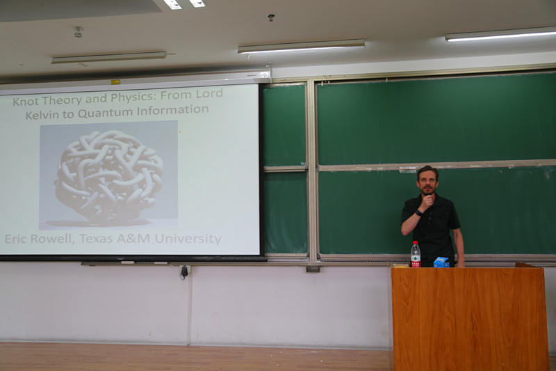 为拓宽学生们的国际化视野,让学生们了解数学领域的前沿知识,我院特意邀请了美国德克萨斯A&M大学Eric Rowell教授为同学们带来题为“纽结理论和物理学:从开尔文到量子信息”的主题讲座,讲座于6月8日在沙河校区J3-210举办,数学与系统科学学院党委副书记王菲老师,分团委书记丁丁老师,以及14、15级全体同学参加了此次讲座。