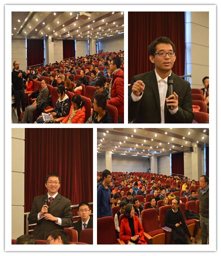 开幕式后,Paulo Lima-Filho教授和周建新教授分别带来了精彩的讲座。Lima-Filho教授从最基本的Euler公式讲起,逐渐引出Dilogarithm函数和Riemann Zeta函数等内容。报告循序渐进,使学生们大开眼界。周建新教授简要介绍了美国德克萨斯A&M大学,讲述了数学在当今社会的重要地位并鼓励同学们开拓进取积极申请去世界一流的数学学院深造。讲座后,两位教授悉心回答了同学们的提问。