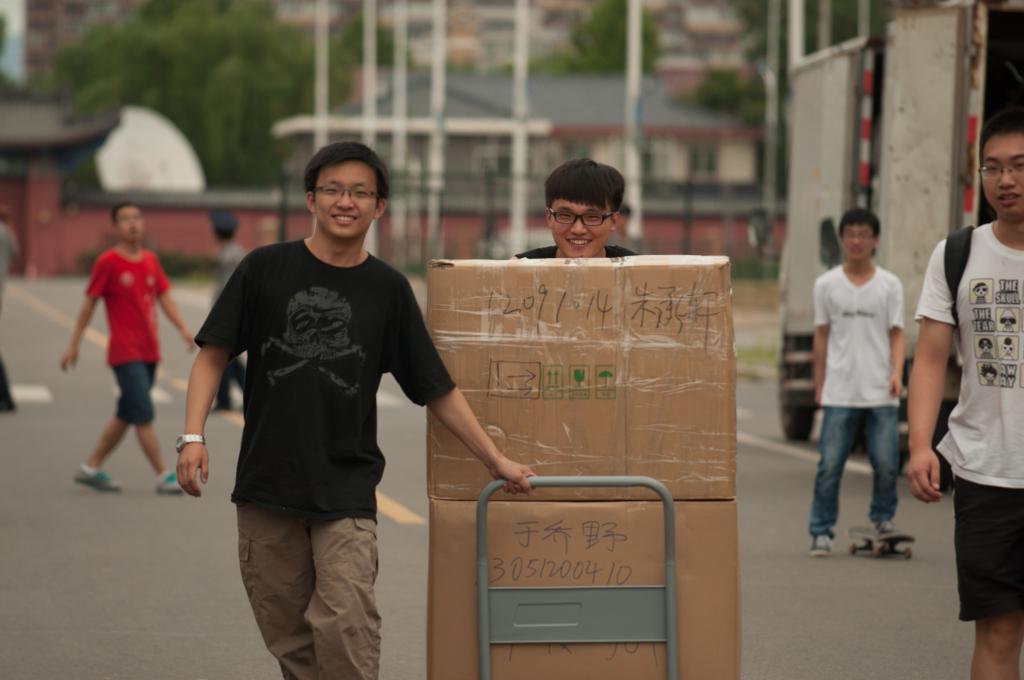 本次搬迁工作受到了学校领导,学院领导的高度重视。学院副书记王菲老师,12级辅导员张文浩早7点到沙河校区行李装载现场组织搬迁工作。我院女生于上午9点许顺利完成行李装车和人数清点工作。上午10许,我院12级女生到达学院路校区。我院高年级志愿者和事先到达学院路校区的12级男生志愿者齐心协力,快捷、有序地帮助女生完成了行李的上楼安置。下午3点许,我院男生在沙河校区准时完成行李装车和人数清点。4点许,所有男生到达学院路,6点许,所有同学的宿舍搬迁顺利完成。