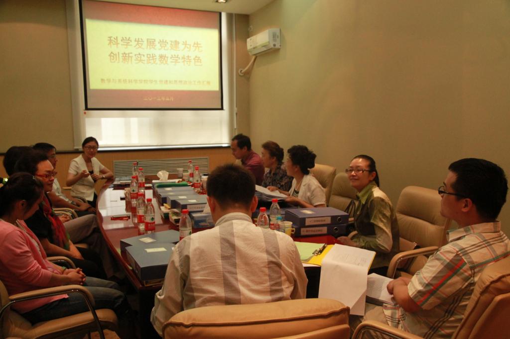 在各位专家领导分组审阅相关党建评估材料的同时,我院党委副书记王菲代表学院,结合我院近两年来党建和思想政治工作情况,向检查组专家作了题为《科学发展党建为先 创新实践数学特色》的汇报。汇报从党建工作总体思路、党建和思政工作基本情况以及特色工作实施情况等几个方面对我院的党建工作做了具体的介绍。