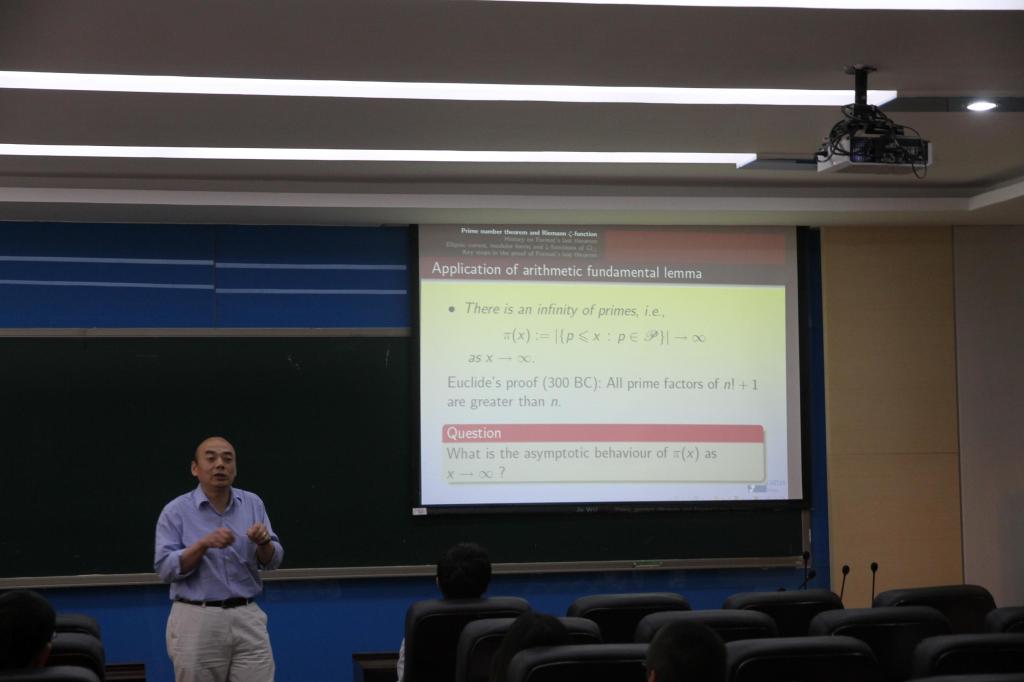 素数定理,费马大定理是数论中的两个非常重要的结论。在这次讲座中,吴杰教授简单的呈现了他们的历史和一些主要观点,以及这两个定理的证明过程。最后,吴杰教授指出他们与朗兰兹定理的关系。这次的讲座,让台下的老师和学生们很好的理解了两个定理的发展,以及他们在证明哥德巴赫猜想中发挥的巨大作用,让大家受益匪浅。