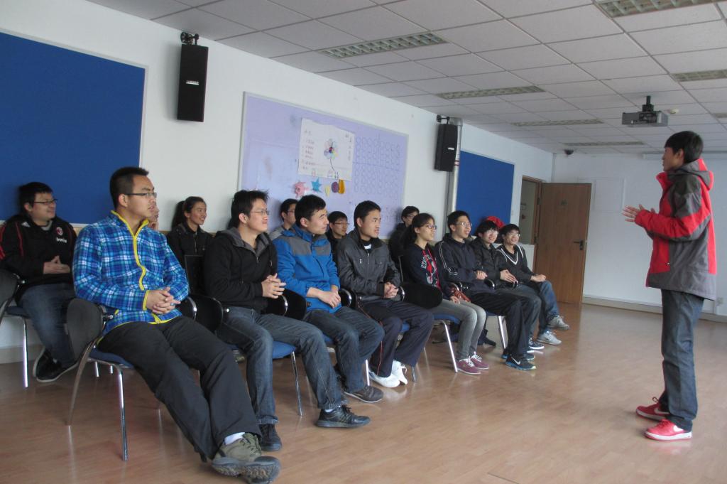 4月20日上午,我院硕士和博士研究生于北航知行北楼开展了一系列素质拓展活动。此次训练共有来自硕士博士各班级的20名同学参加,旨在加强班级年级间交流,给各年级不同学术研究领域的研究生提供一个相识相知从而互帮互助的平台,从而进一步团结我院研究生队伍。同时也是响应新一代中央领导集体提出的引起广泛共鸣的“中国梦”话题,百年历史,坚定华夏子女的信念;立足当下,完成担负的历史使命;每个人都有理想和追求,都有自己的梦想,而在追梦的行程中,需要强健的体魄,健康的心灵。作为北航人,我们仰望星空,脚踏实地。在实现中华民族伟大复兴的征途中,我们任重而道远。今天我们汇聚此处,既强健体魄,又交流内心。