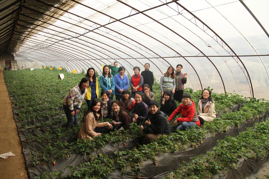 老师们在草莓种植园园工的指导下,学会了如何辨别草莓的种类、成熟度以及保存方法等知识,一边采草莓一边互相交流的场面十分活跃。此次采摘给我院教师提供了一次接触大自然的机会,增进了教师间的交流和感情。