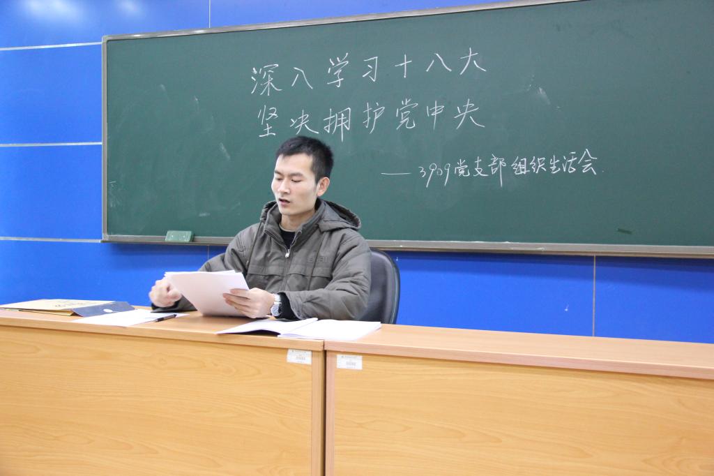 11月20日,3909党支部在主楼213召开党支部组织生活会,集中学习党的十八大会议精神。会议由3909党支部书记韩大利同志主持,支部党员及入党积极分子参加会议。