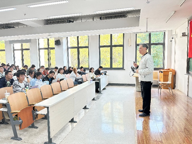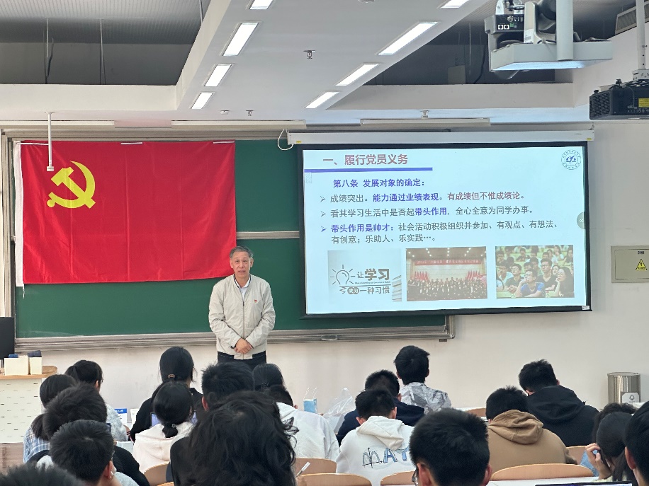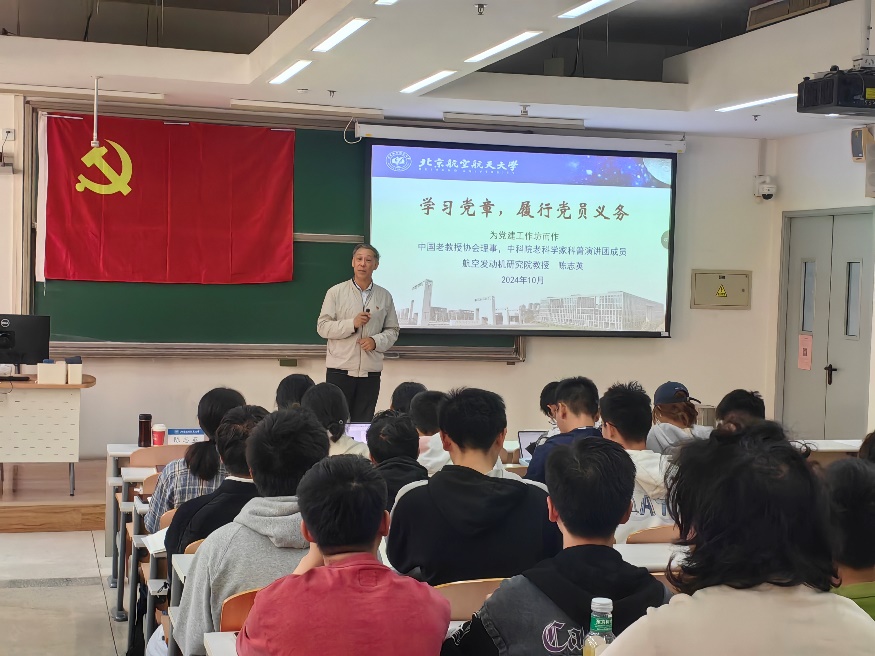 10月23日下午,澳门十大信誉好的网站2024年秋季学期院党校第一次党课暨开班仪式于沙河校区j5-201举行。本次党课由北航“三老”协会常务副会长、航空发动机研究院陈志英教授主讲。学院党委副书记魏茜出席,近150名学生党员和入党积极分子聆听学习。