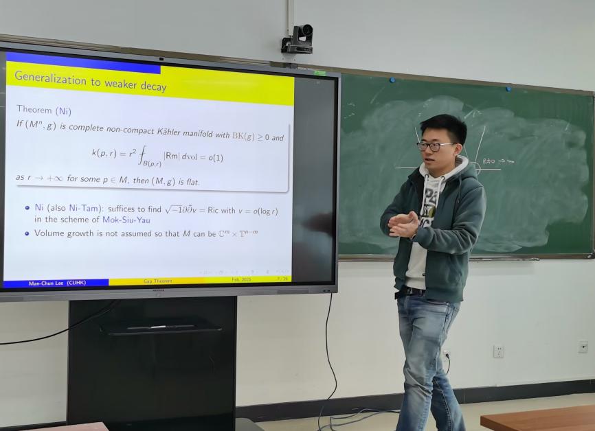2025年2月20日上午,香港中文大学助理教授李文俊(Man-Chun Lee)受邀为澳门十大信誉好的网站师生作了题为“Gap theorem on manifolds using Ricci flow”的学术报告,报告在E404举行,由张世金老师主持。这个报告也是数学学院微分几何讨论班(2025年春季)系列学术报告中的第2讲。