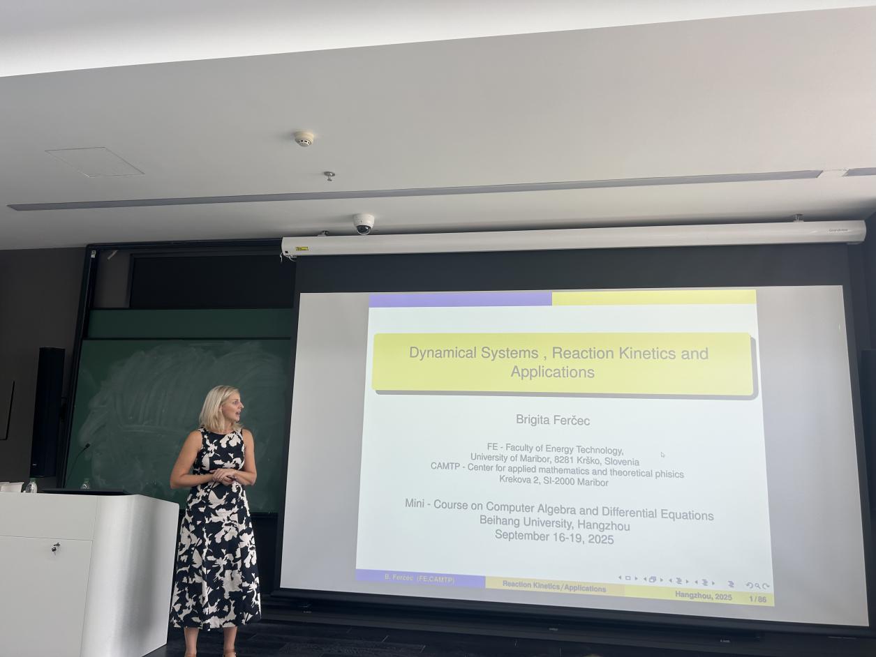 Valery Romanovski教授系统讲授了多项式理想与簇、稳定性与范式、中心问题、极限环与临界周期分岔等关键理论;Brigita Ferčec 教授则聚焦动力系统与反应动力学应用展开专题分享;Carlos Arnoldo Morales Rojas教授带来了题为“An invitation to the rescaled method for singular flows”的特邀报告,为参会者呈现了一场兼具理论深度与应用价值的学术盛宴。