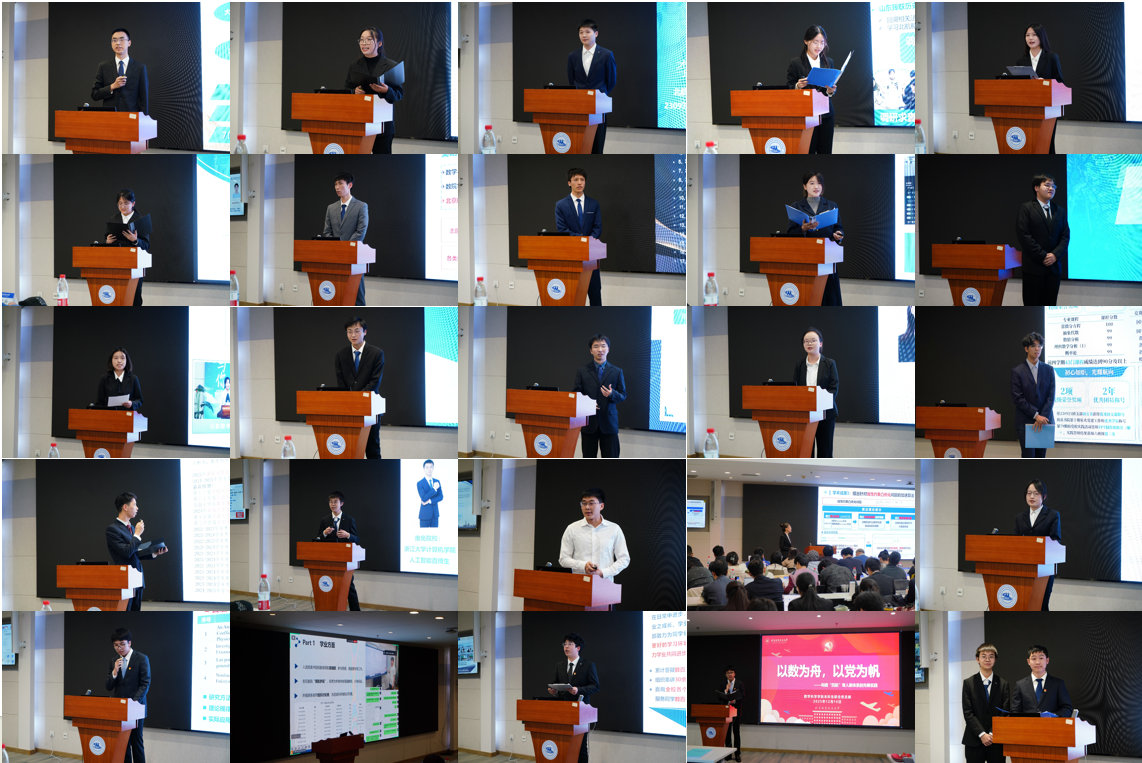 25位候选人及团队依次进行答辩,他们就个人荣誉、学科竞赛、成长经历等方面进行了精彩的展示,以清晰的逻辑、生动的语言,阐述了过去的探索与收获,充分展现了数院学子探索进取、积极向上的精神风貌。